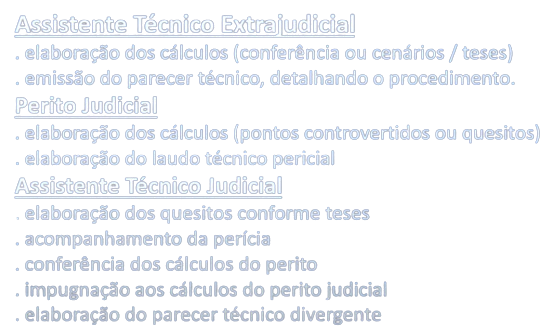 Faço os cálculos em processos da área trabalhista, atualizando valores de acordo com a sistemática do Tribunal Regional do Trabalho e jurisprudência aplicável à matéria.